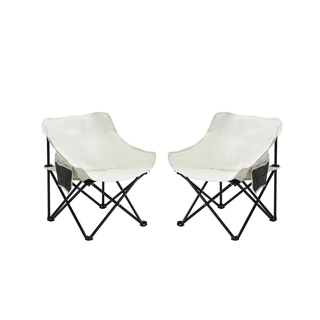 2PCS Outdoor Camping Chairs Folding/Portable, Comfortable Seating, Durable Steel Frame, Beige Polyester, Compact Design