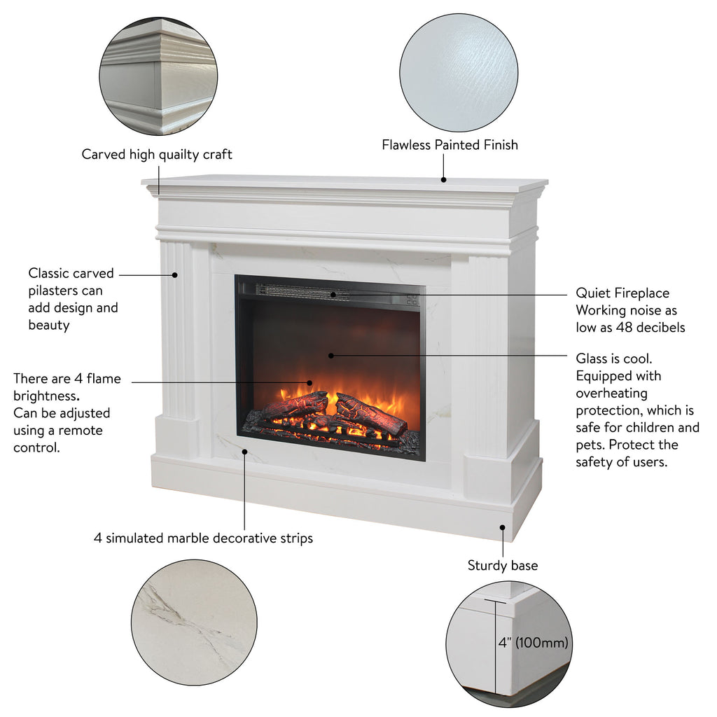• Includes. Mantel, replaceable electric fireplace heater insert.Installation is extremely simple and allows for effortless relocation