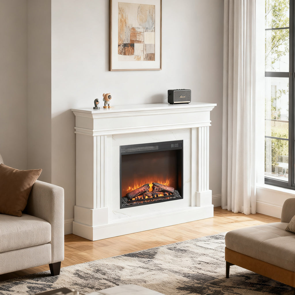 This fireplace is designed to fit seamlessly into various home spaces. Whether it's a large living room or a compact bedroom, there's an ideal spot for installation.