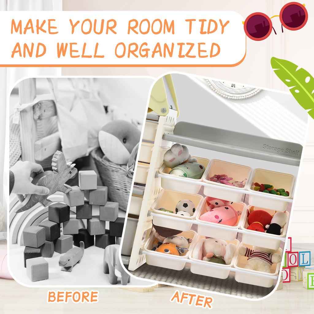 Kids Toy Storage Organizer with 14 Bins, Multi-functional Nursery Organizer Kids Furniture Set Toy Storage Cabinet Unit with HDPE Shelf and Bins for Playroom, Bedroom, Living Room