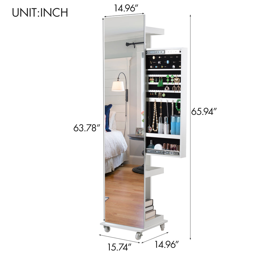 • Full Length Mirror 360° Swivel Jewelry Cabinet