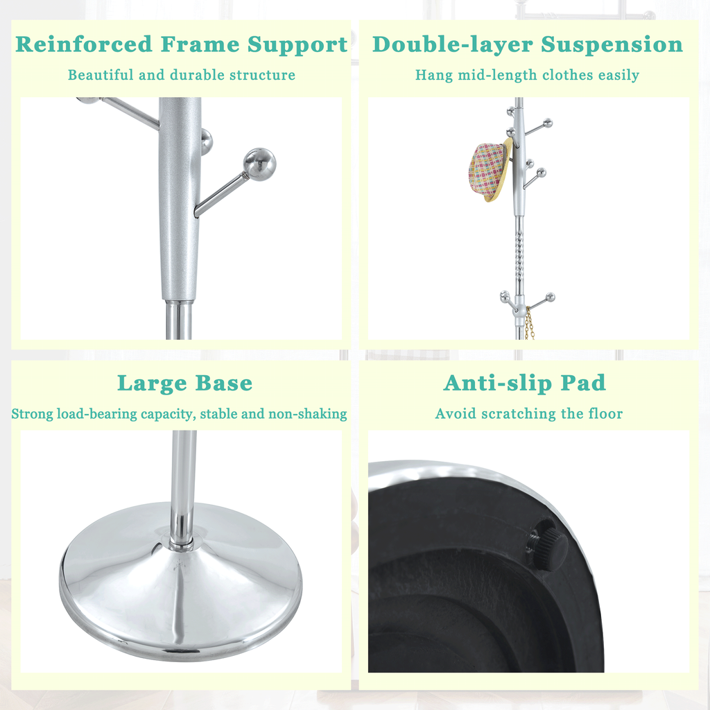 Main Stainless Steel Spray Painted Hanger, Modern Silver Stainless Steel Coat Rack, Solid Wood Reinforcement At The Bracket, 72 Inch Raised Design With Detachable Bracket (Gold Optional)W1151P276821