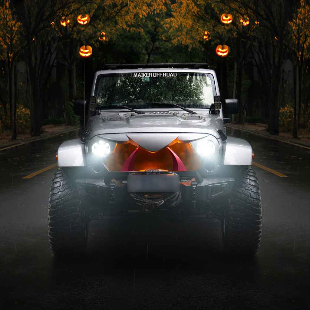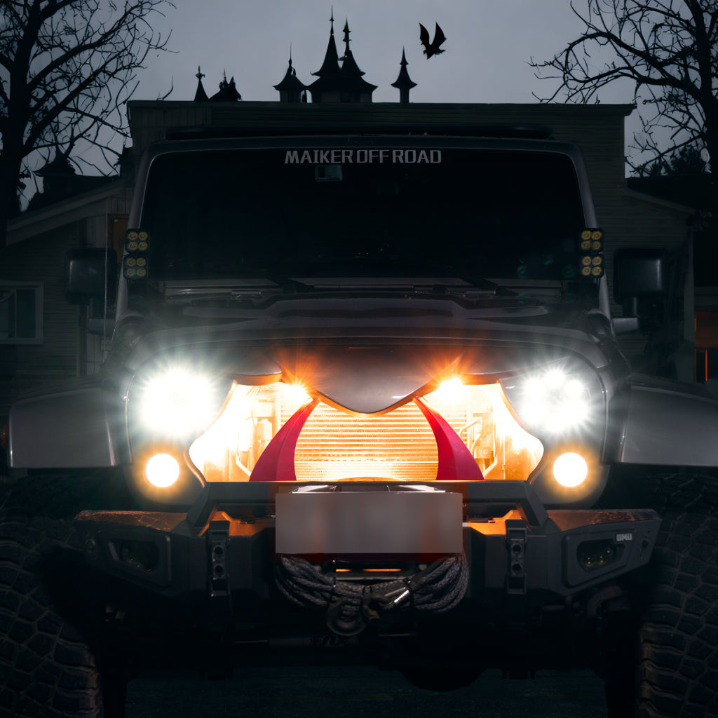 Halloween grill can give your Jeep an aggressive gladiator look! Be different and stand out from the crowd.