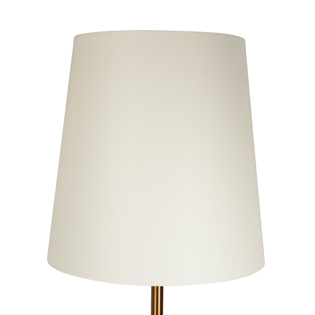 • It also comes with a handy brass accent table. The huge white shade is the ideal addition to boost your home's décor because it goes well with any style. This floor lamp is a must-have to give your house a dash of contemporary beauty!