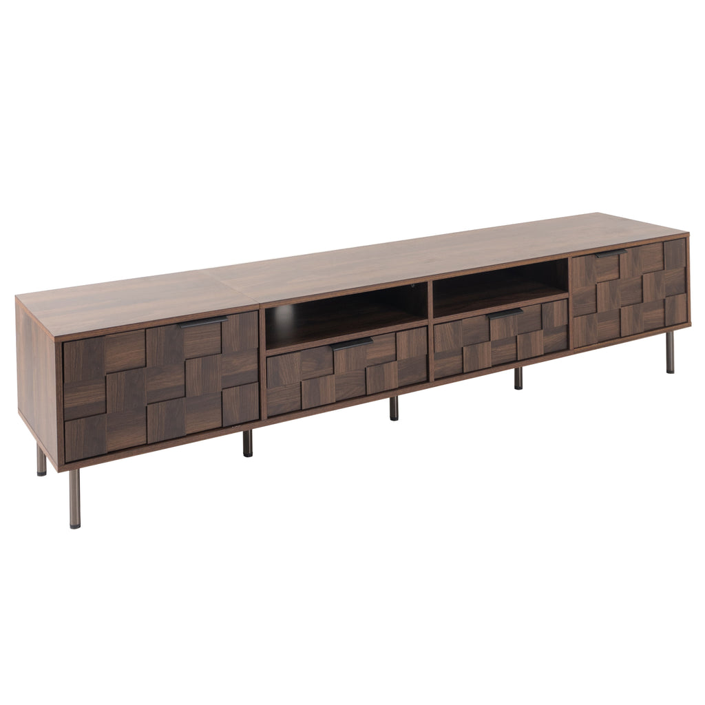 This TV cabinet is equipped with two drawers and four storage cabinets. The two closed cabinets can store seldom-used items to keep the space neat and tidy, while the two open cabinets can display your favorite ornaments or books, adding a sense of layering and visual beauty to the space.