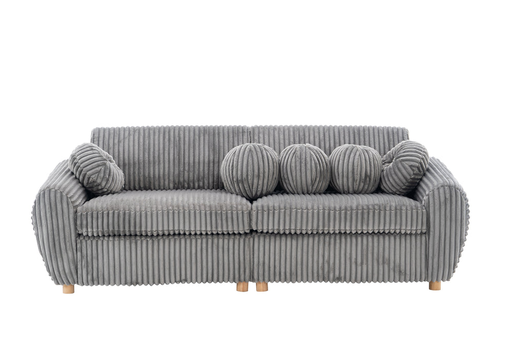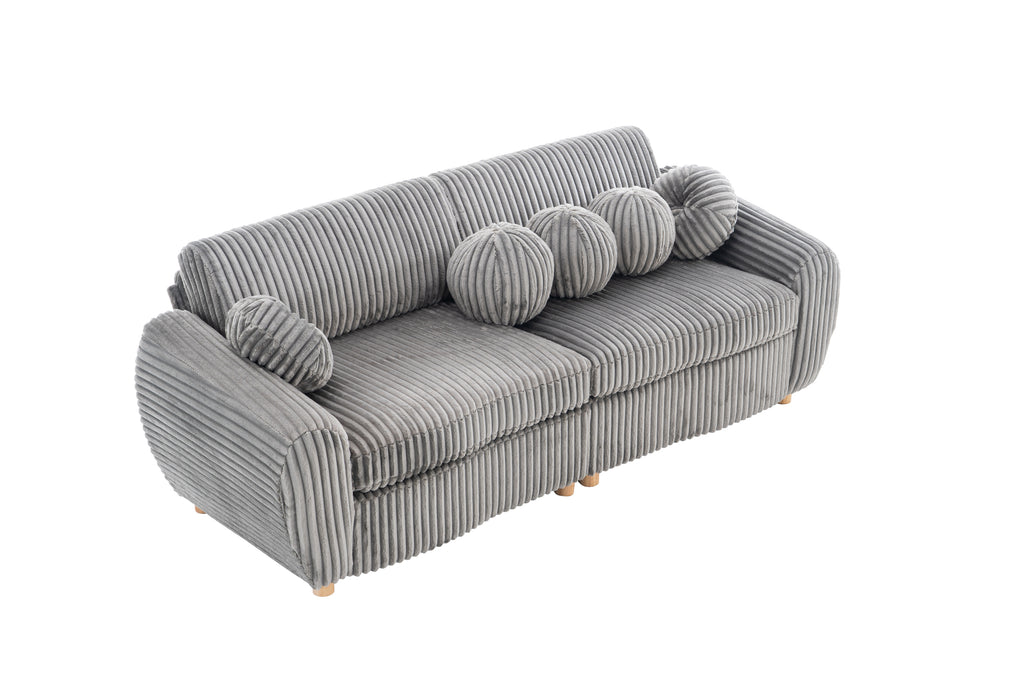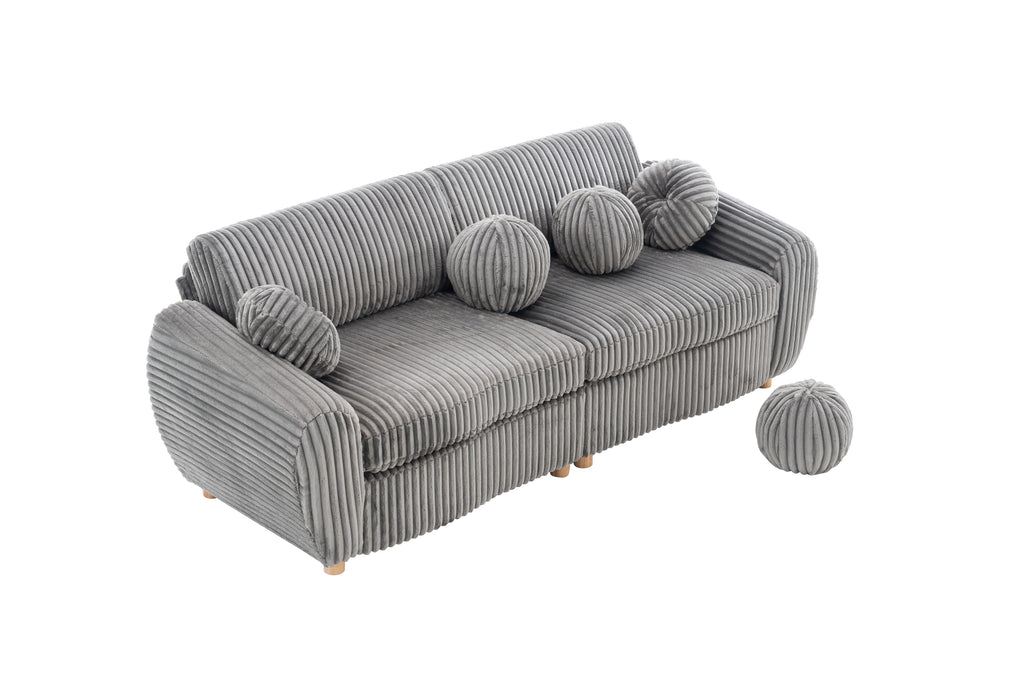 Modern Sofa for Living Room, 84' Grey Corduroy Sofa Couch, Sectional Love Seat Couch, Upholstered Sofa for Apatment Bedroom Home Office