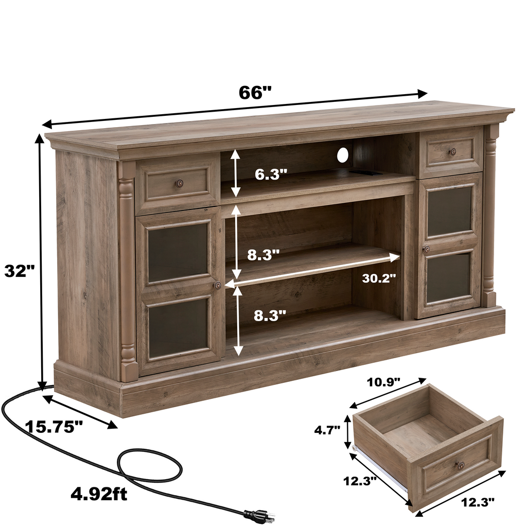• Farmhouse Fireplace TV Cabinet - This 70-inch TV cabinet fits TVs up to 80 inches and features adjustable LED scent lighting for a great visual experience!