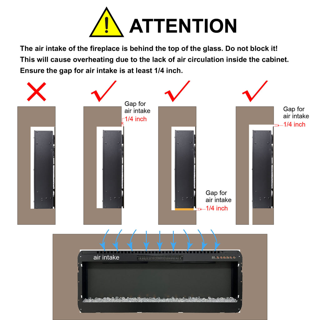 The middle of electric fireplace is the air outlet, and the left and right sides of the top are air intakes , which concentrate more heat in one place and make it warmer.Our electric fireplace has CSA certified,it's safe and comfortable to use.Crystal decoration reflects light giving amazing look.
