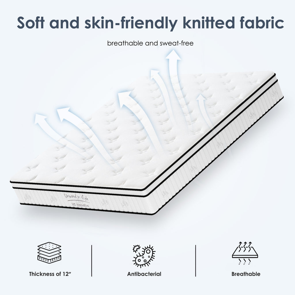 Queen Size Mattress,12 Inch Hybrid Mattress, Individually Pocketed Innerspring, Medium FirmQueen