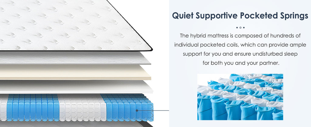 • This hybrid mattress features a blend of memory foam and pocket springs, providing the perfect balance of support and comfort. It conforms to your body shape to relieve pressure points and ensure a restful night's sleep.