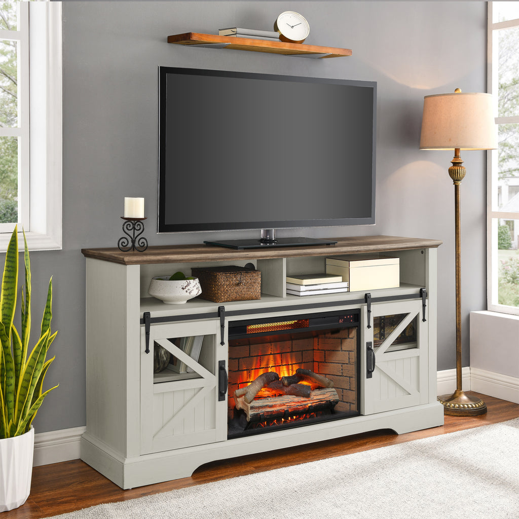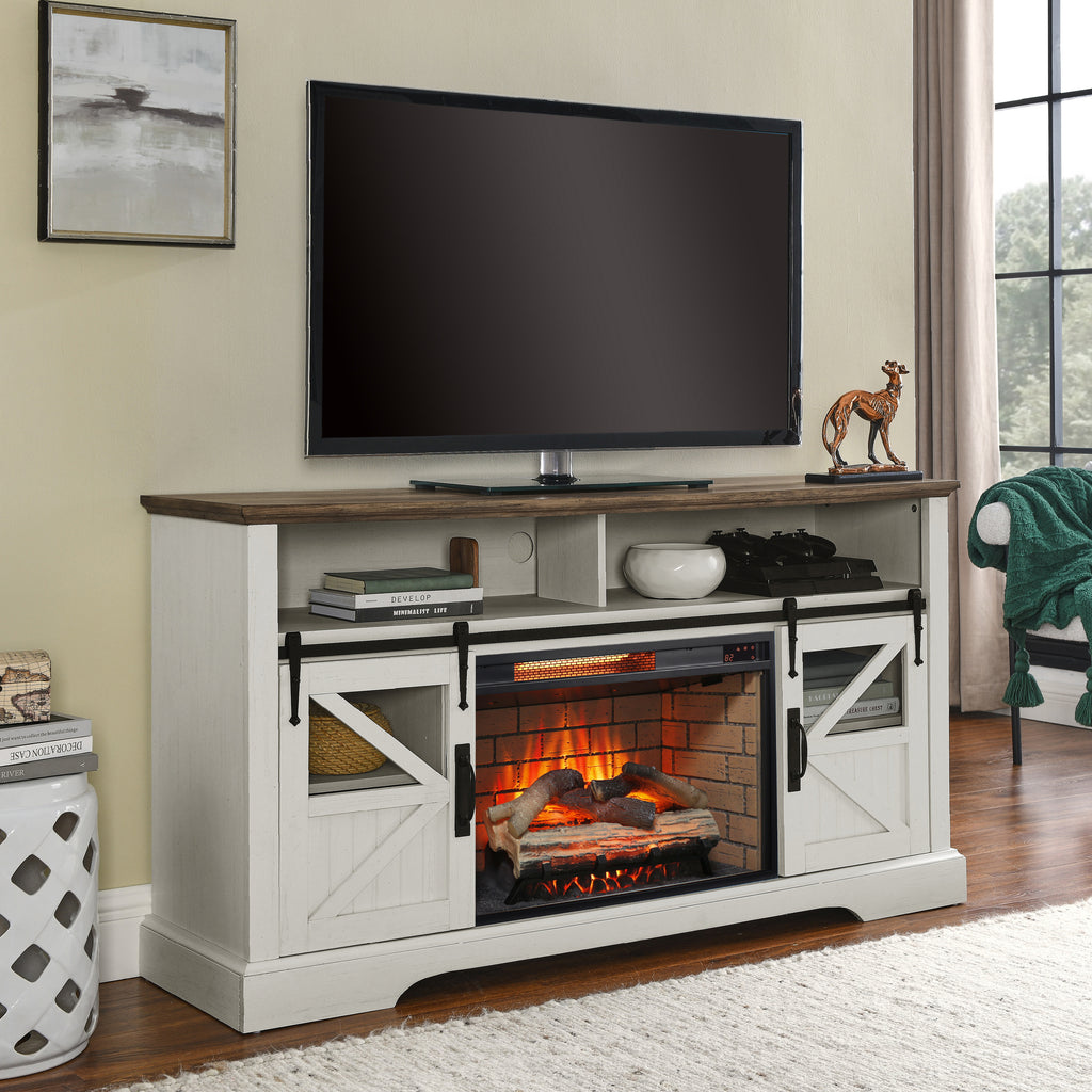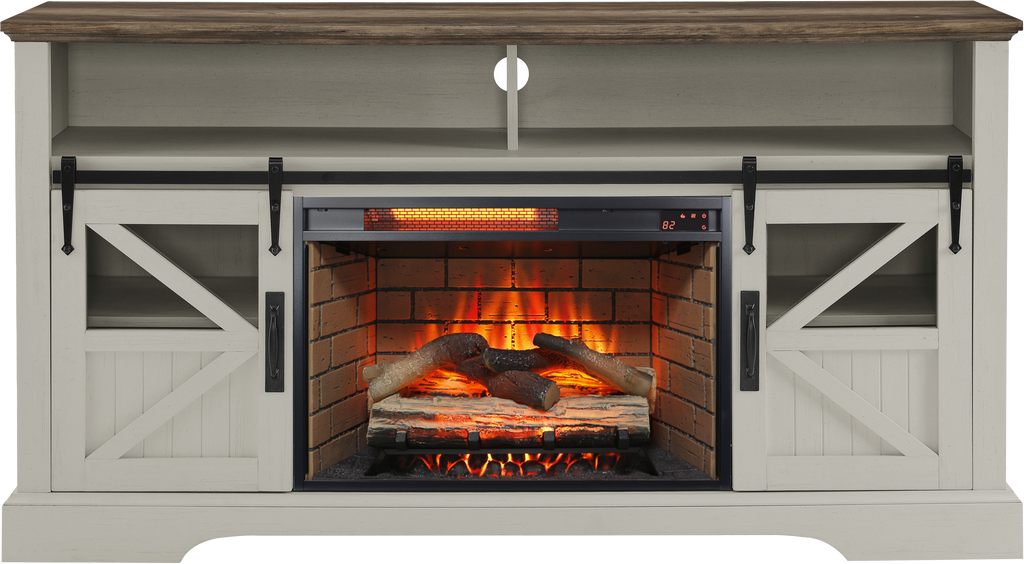 60 Inch Electric Fireplace Entertainment Center With Door Sensor-Jasmine white color