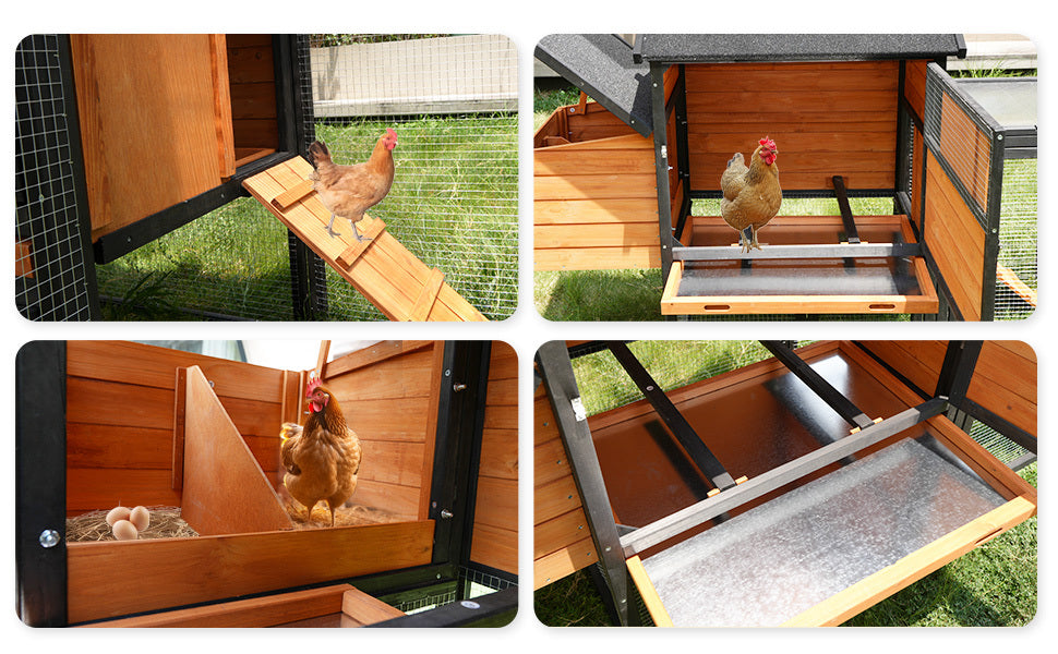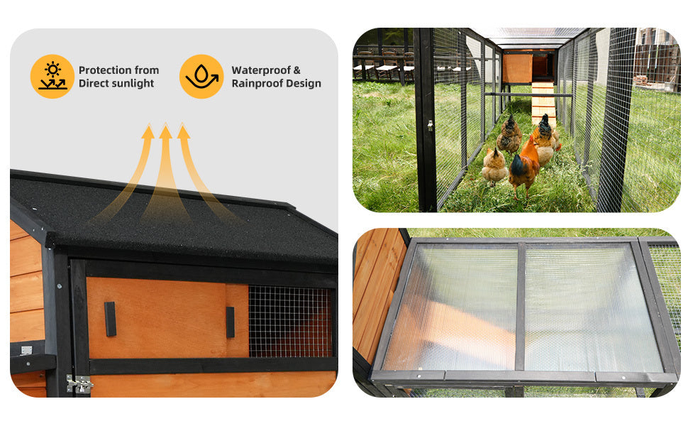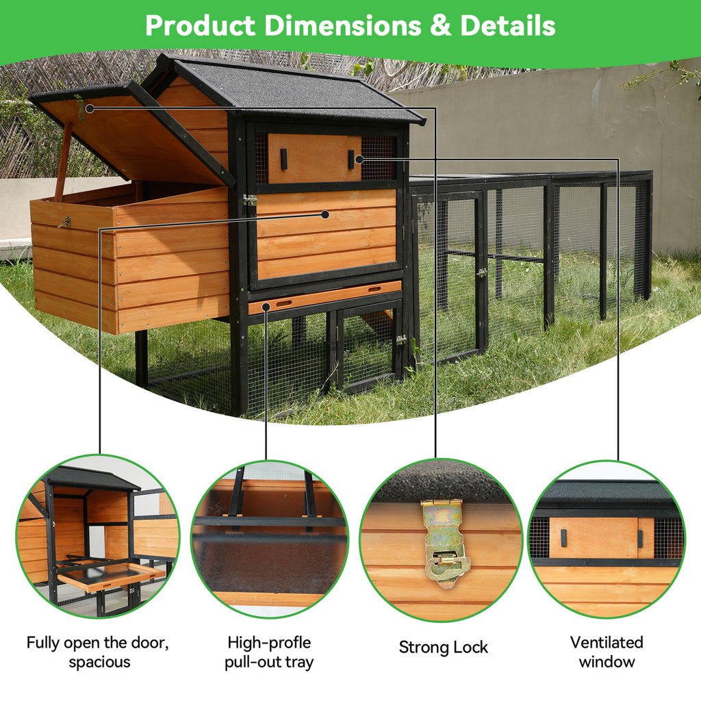 large main house,brown+black Wooden Chicken Coop, Large Outdoor Hen House with Run and Nesting Box Poultry Cage, Rabbit Hutch, Waterproof Anti-UV Panel for Backyard