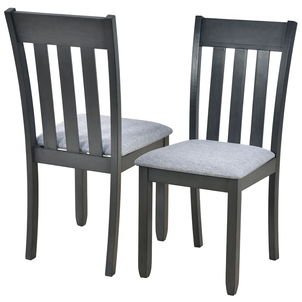 - This set of tableware includes 1 table and 4 matching chairs, this multi-functional dining set seats up to 4 people, perfect for families to enjoy meal times together. This dining table set is marketed in two colors, gray and natural wood wash. The gray one match the gray cushion is suitable for minimalist home decor style or industrial home decor style. The natural wood wash one also matchs gray cushion is suitable for farmhouse home decor style.