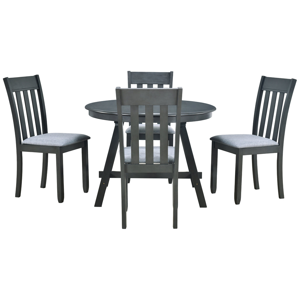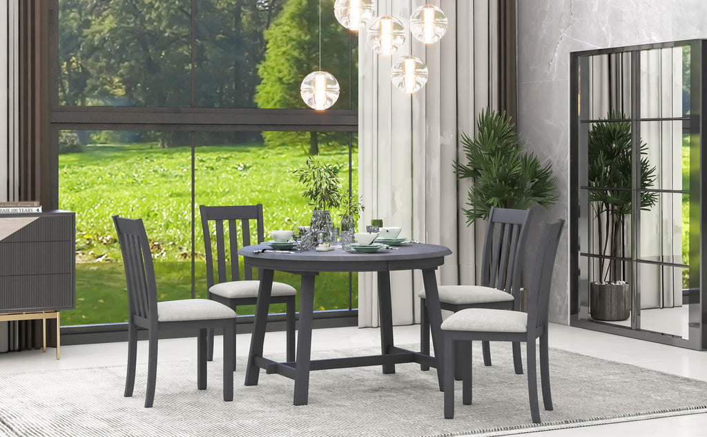 - This 5-piece dining set includes one round table and four dining chairs, create a warm and relaxed dinner time. Perfect for family meals or gatherings in your dining room or kitchen. The whole dining table set looks simple and clean.
