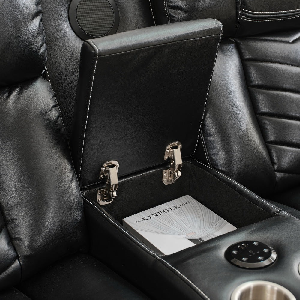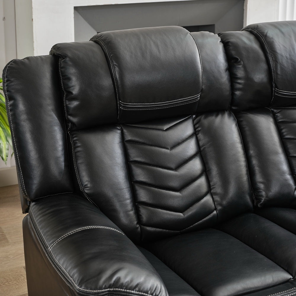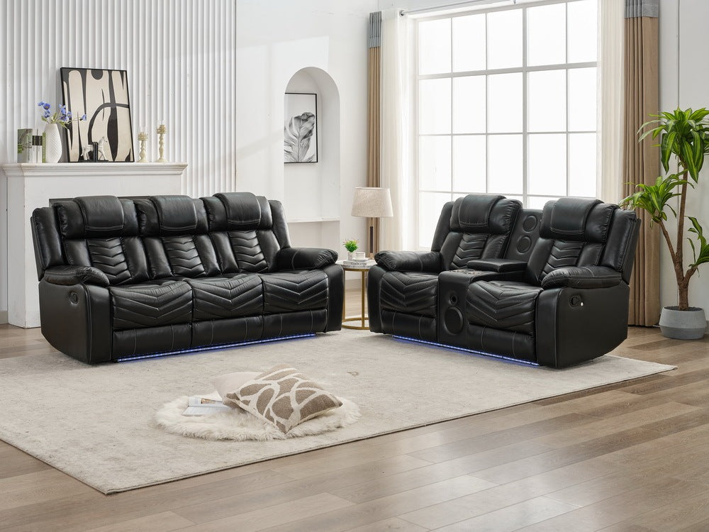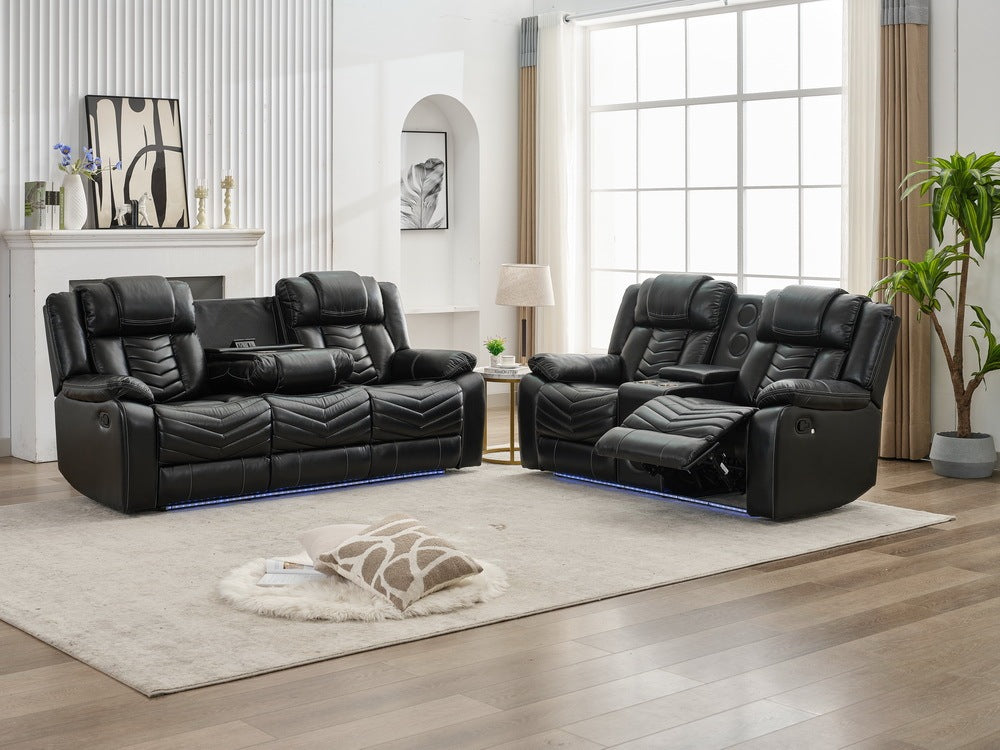 MS M073 32 2 Pieces Manual Reclining Sofa Sets,Technical leather Manual reclining Loveseat w/ wireless charger / LED strip for Living Room,Black