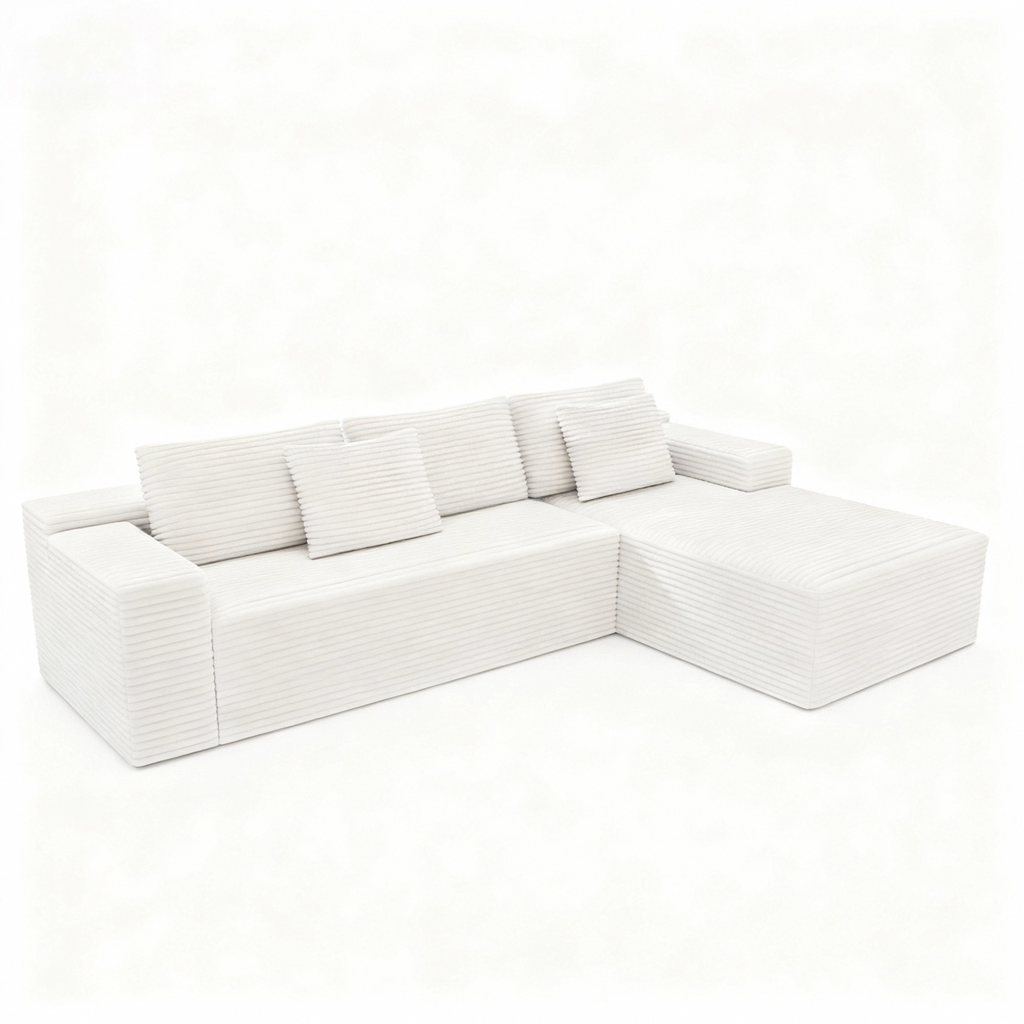 - Modular Sectional Sofa:This sectional sofa featuring a sleek design, clean lines, and high-quality plush corduroy Fabric,This sectional set maximizes space when placed against a wall,this corner sofa effortlessly adds a timeless and sophisticated touch to your home. Designed to be the focal point of attention, it's an ideal choice for elevating the ambiance of living rooms, apartments, and bedrooms.