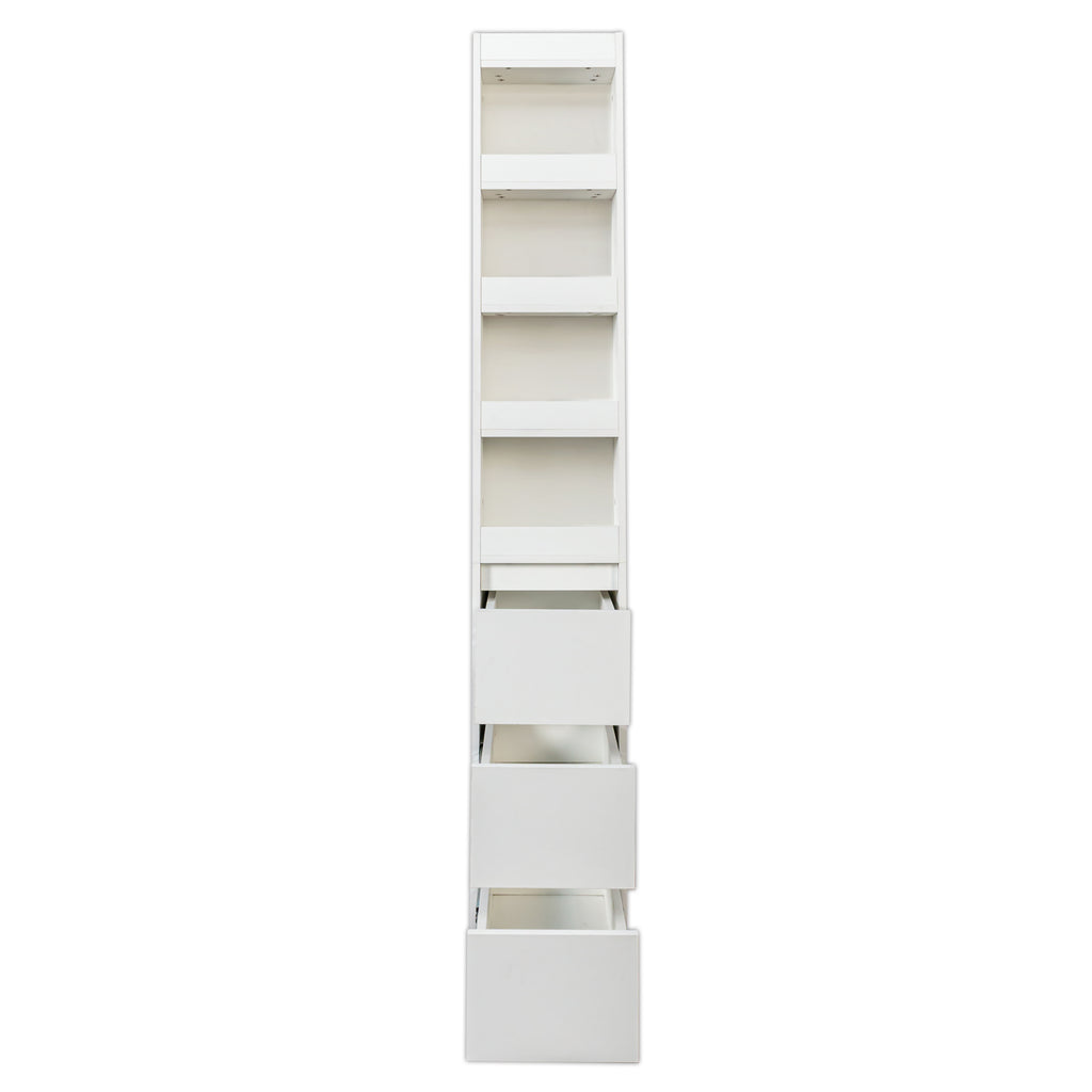 - This tall storage cabinet features 3 drawers and 4 shelves that provide plenty of space for you to store your decorations, wines, tableware, models and more. The drawers can organize clutter to keep your space clean and organized.